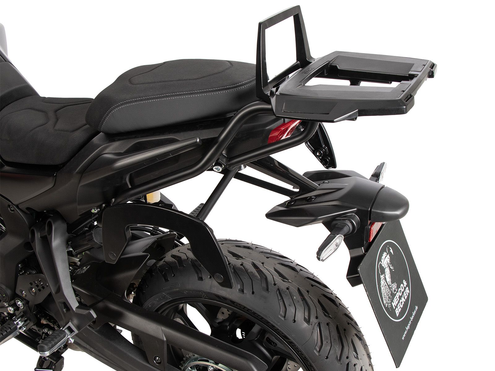 Specifiek ontworpen voor uw motor, dus eenvoudig te monteren. Als de opstaande beugel gemonteerd is, dan kunnen alle topkoffers van Hepco&Becker eenvoudig op de drager bevestigd worden. Dankzij de uitsparingen die rondom in de drager verwerkt zijn, kan deze drager, met of zonder beugel, eventueel ook gebruikt worden om bijvoorbeeld een bagagerol met spanbanden aan de drager vast te maken. Zonder de beugel is het ook mogelijk om een universele grondplaat van een ander koffermerk te monteren.