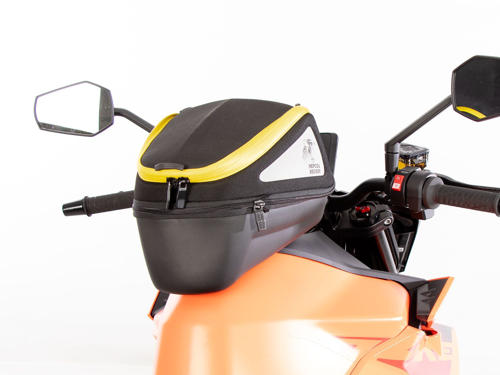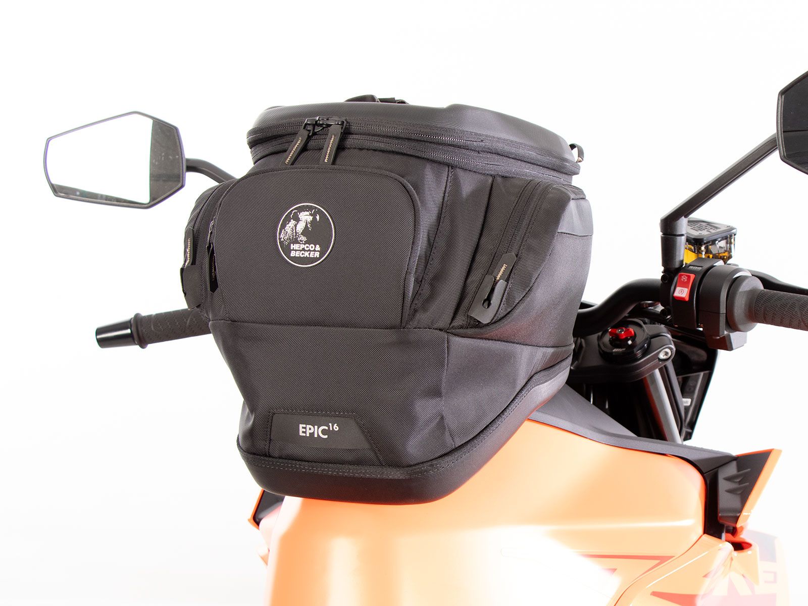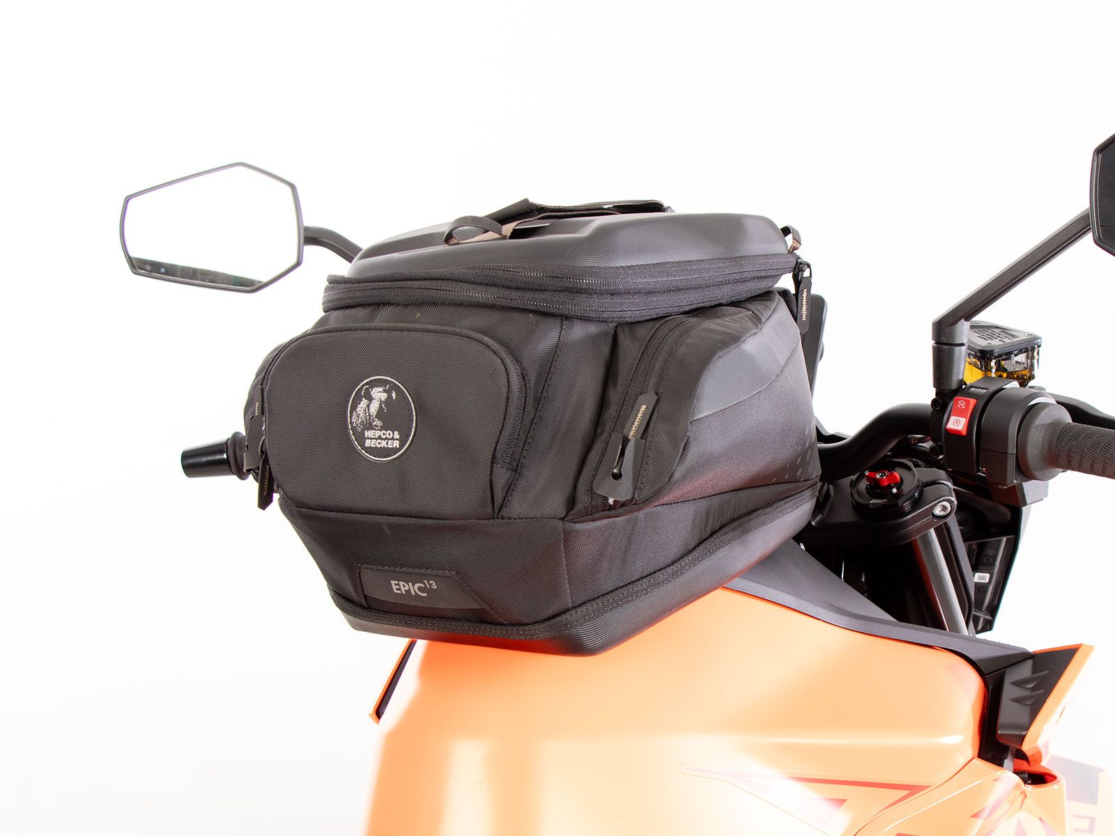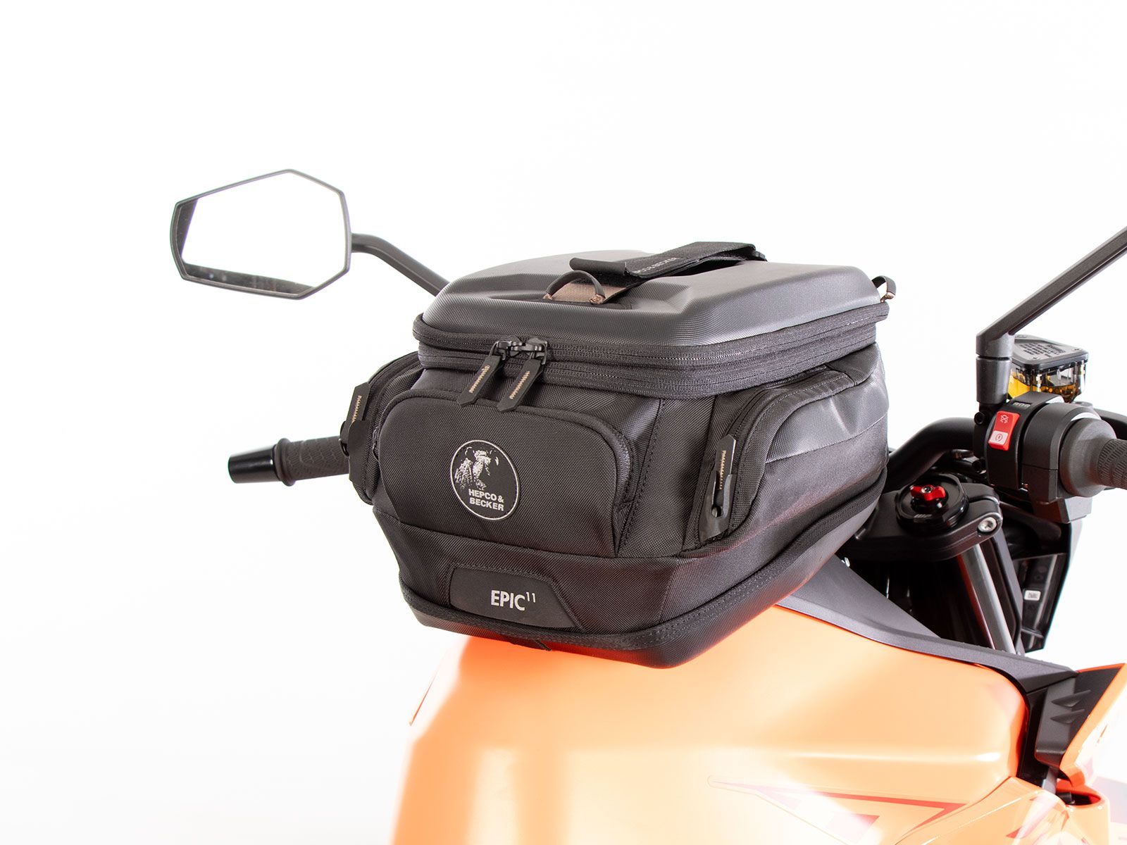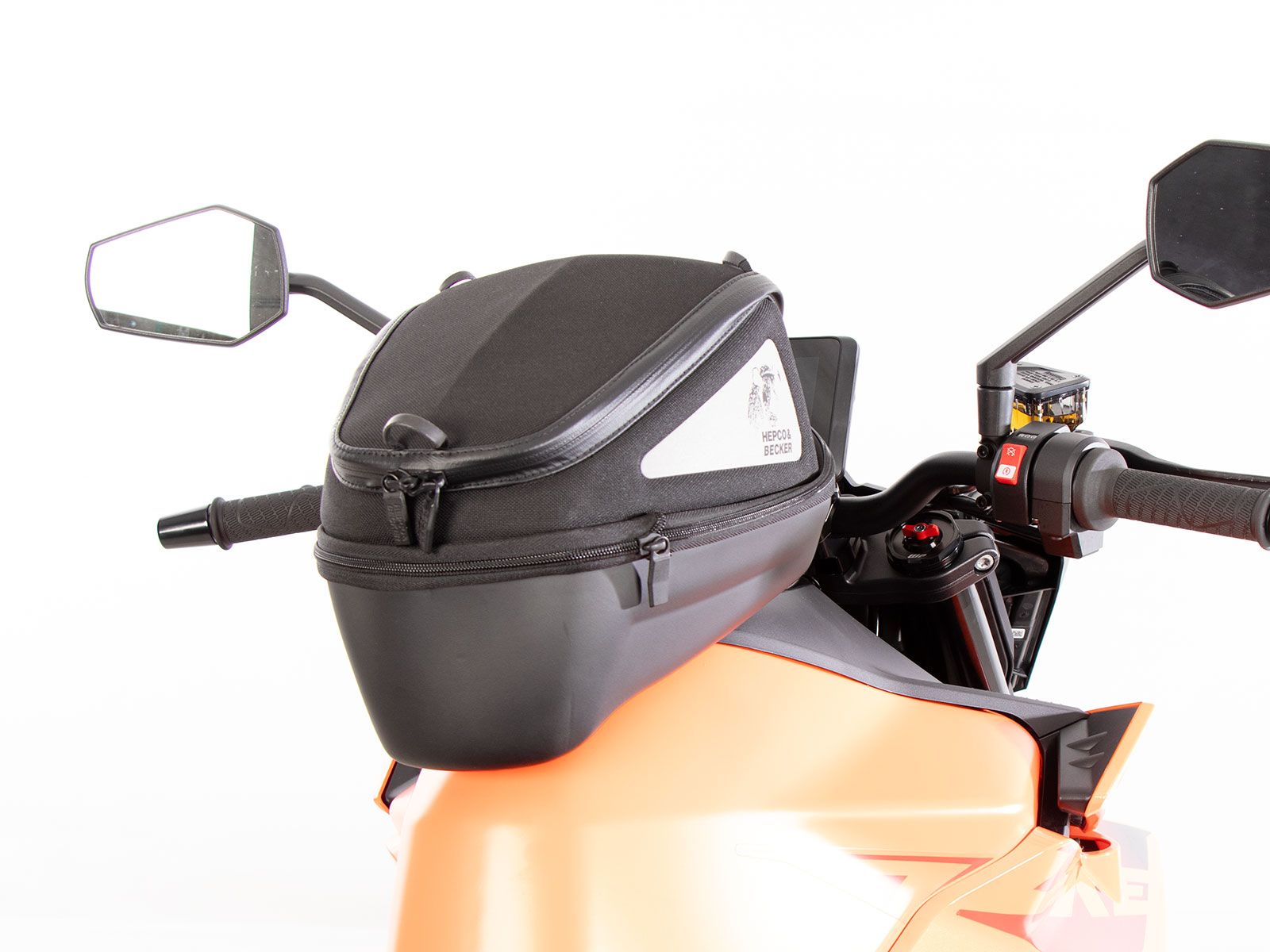 Bevestiging op de model-specifieke HEPCO&BECKER Basic tankring (niet inbegrepen, de tegenhouder voor de tanktas is inbegrepen bij de model-specifieke tankring).