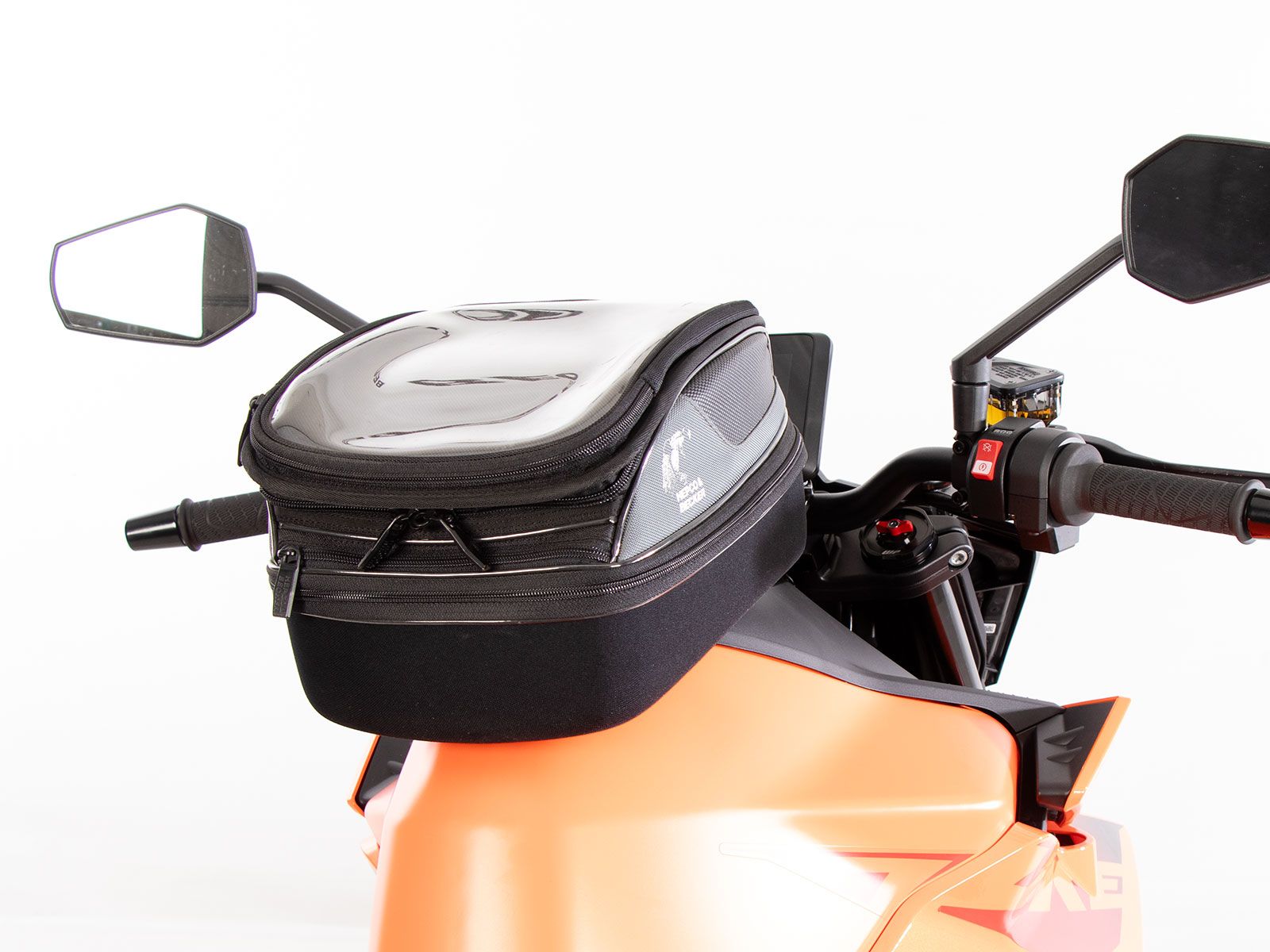 -specifieke positionering mogelijk dankzij bevestigingskanaal in de tanktas