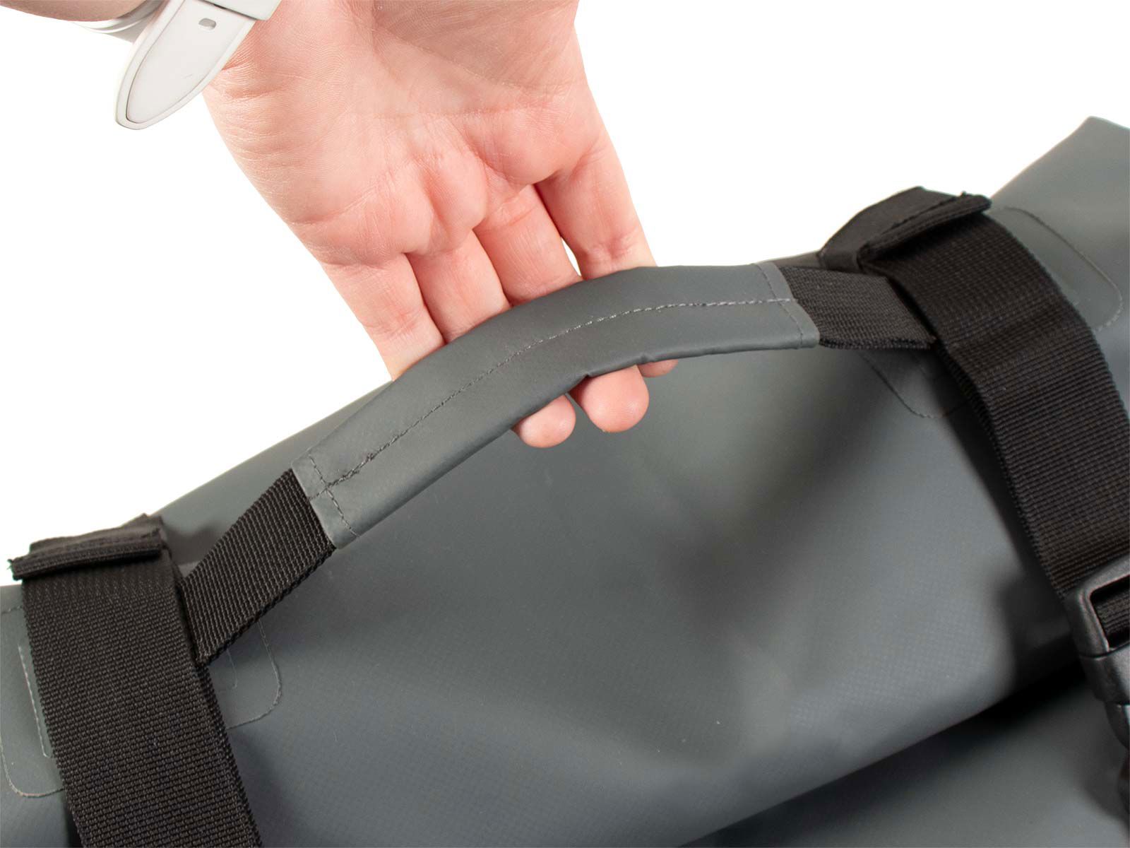 - Brede opening met rolsluiting en kunststof clips aan de zijkanten