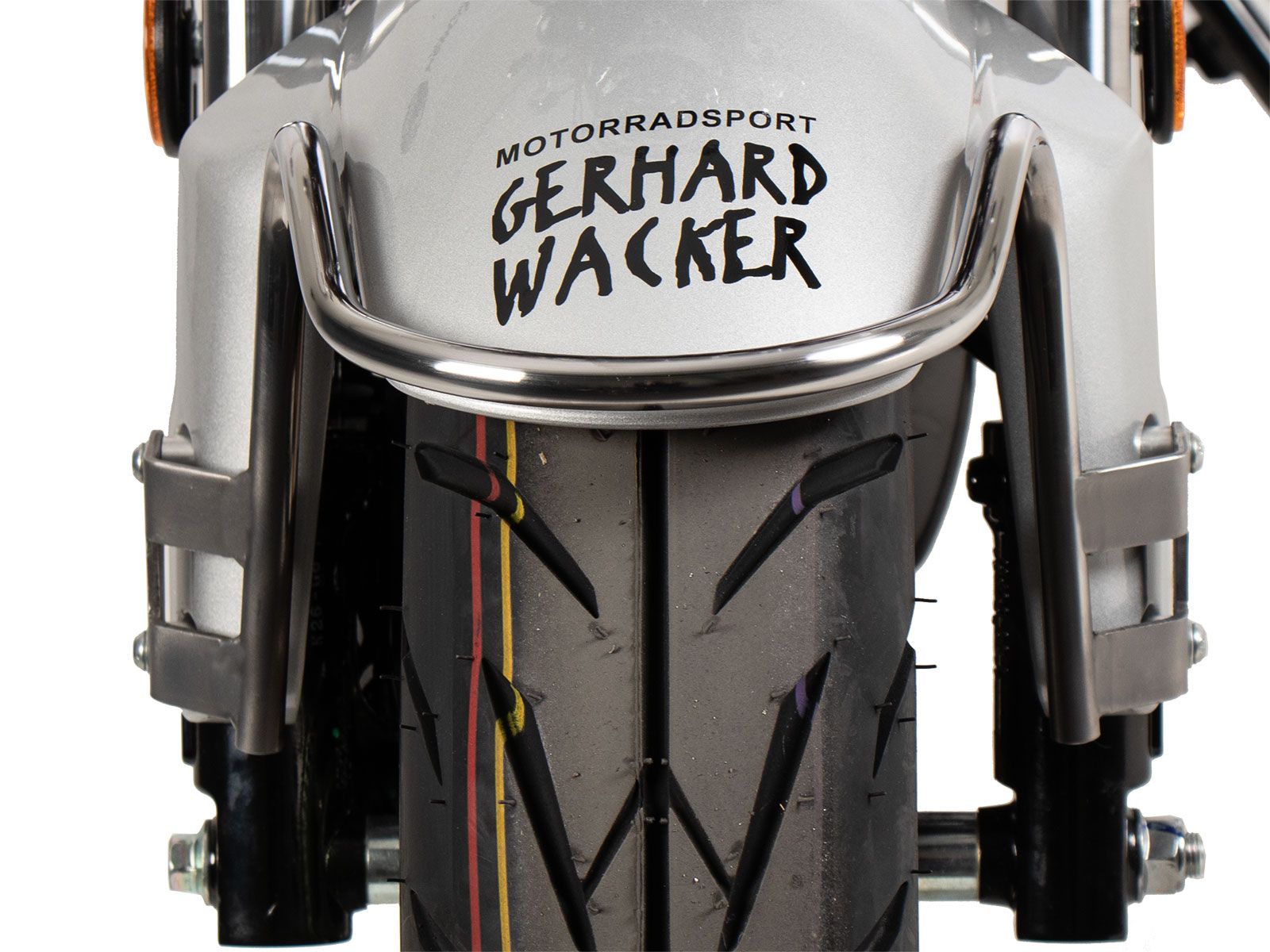 ierbeugel voor op het voorspatbord, om het karakter van uw motor te onderstrepen. Van Hepco & Becker, dus met TÜV-goedkeuring.