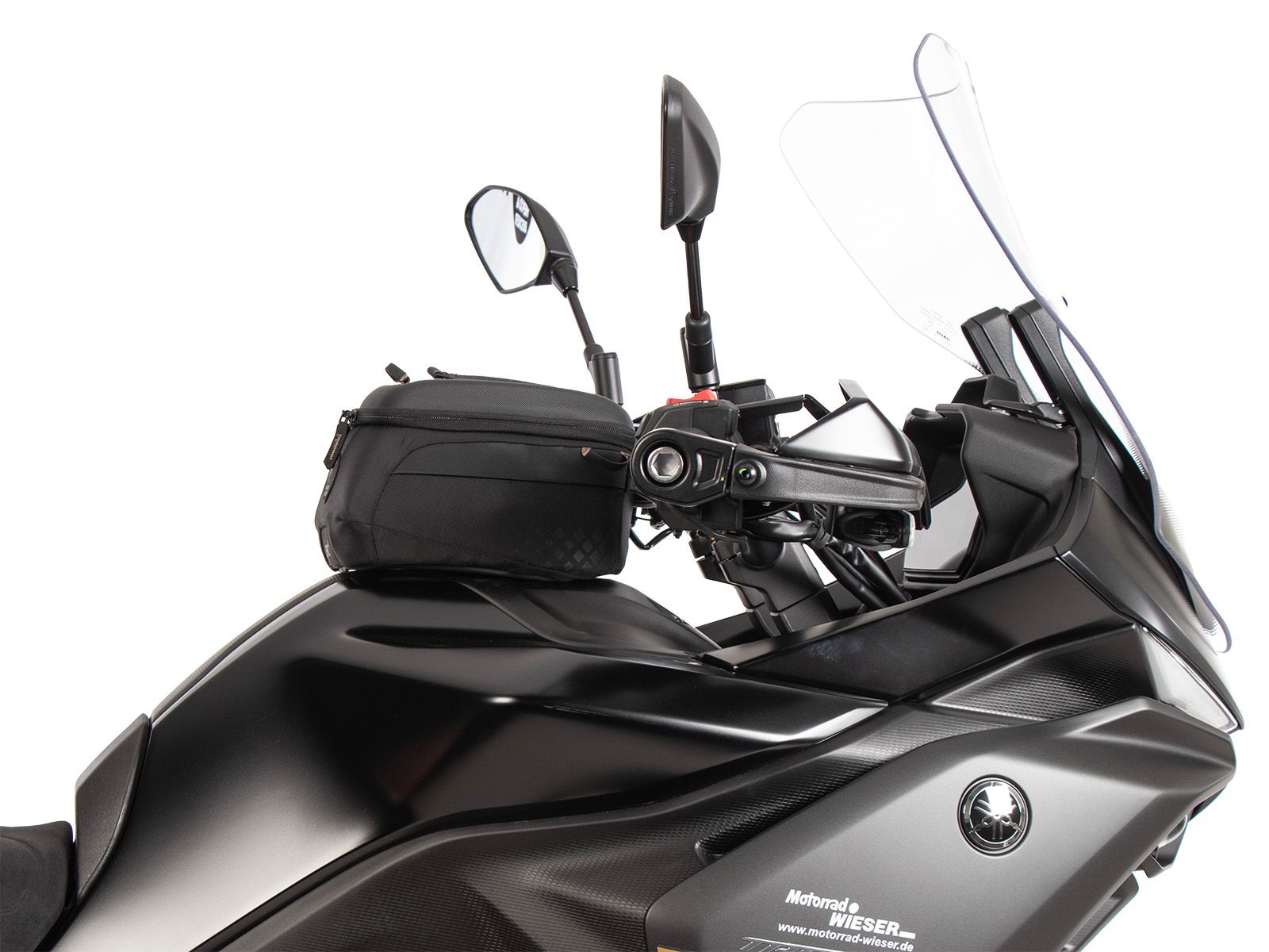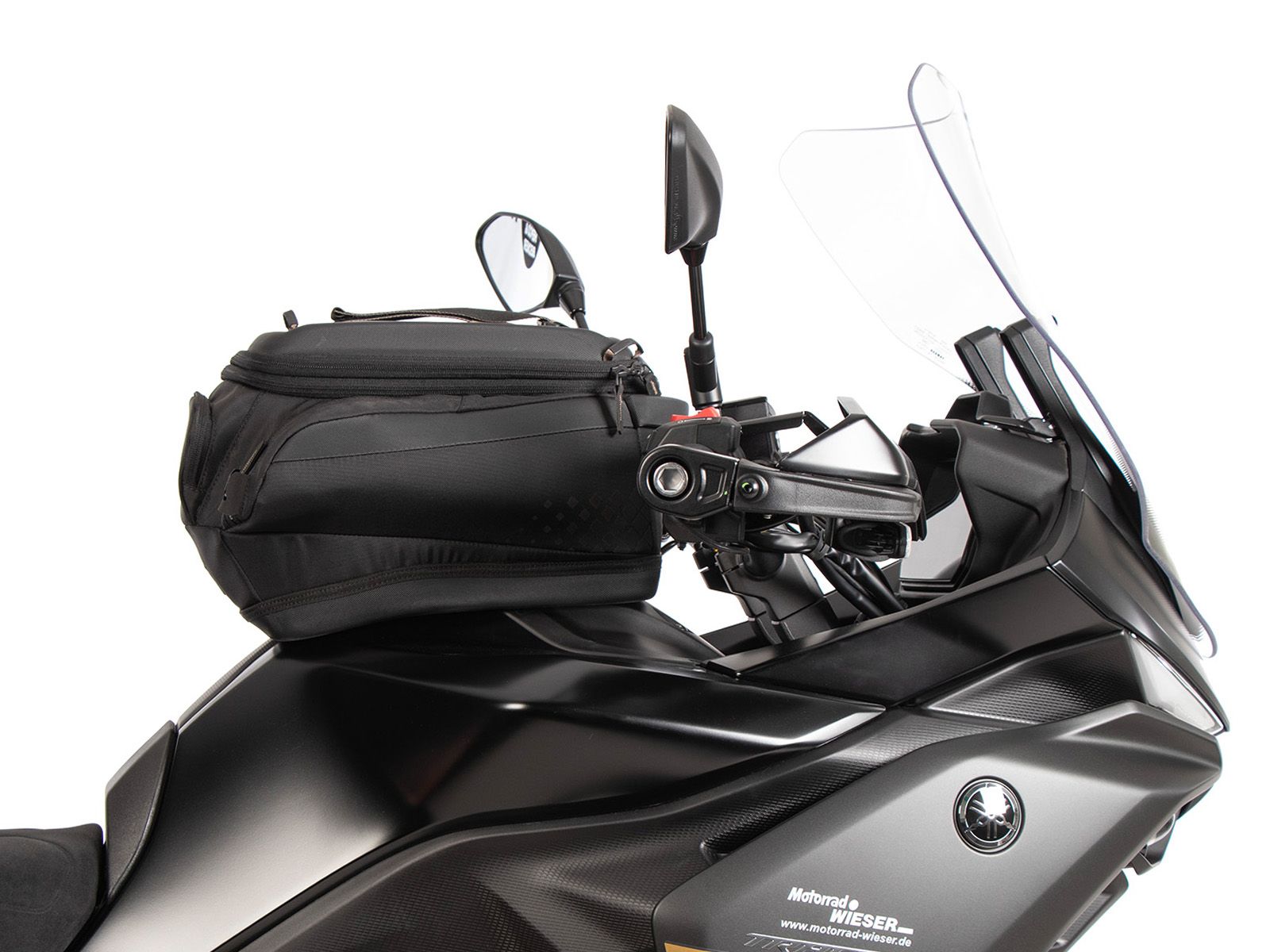 Geen directe plaatsing van de tanktas op de tank om schade aan de lak te voorkomen.