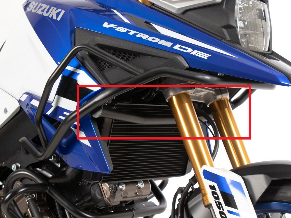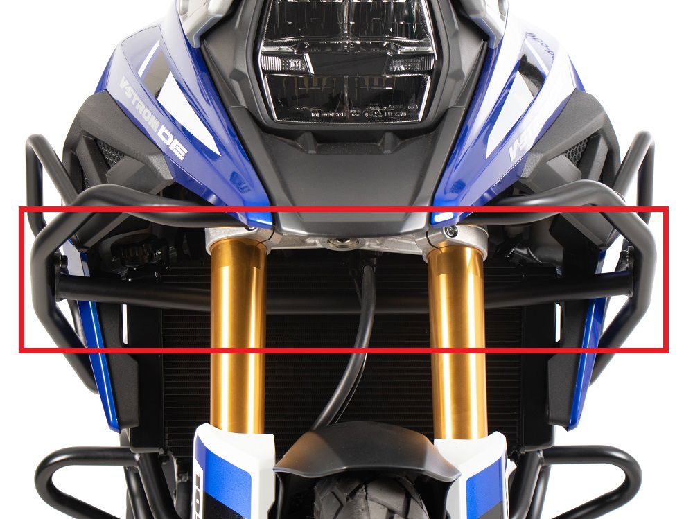 Om onze tankvalbeugel voor de V-Strom 1050 DE nog stabieler te maken, bieden we nu een extra beugel die de tankvalbeugel bij een val fixeert. Hierdoor worden ook de zijkuipdelen beter beschermd.