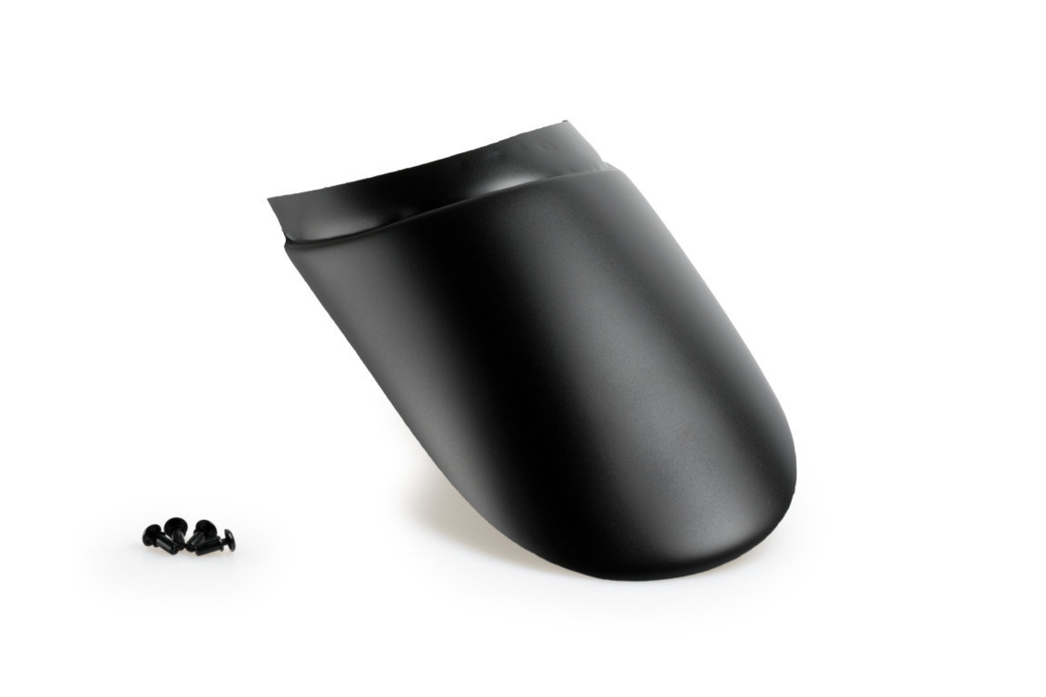 Doordat het voorspatbord aan de achterkant langer wordt, kan er veel minder vuil en water tegen de uitlaatbochten, radiator en blok spatten.