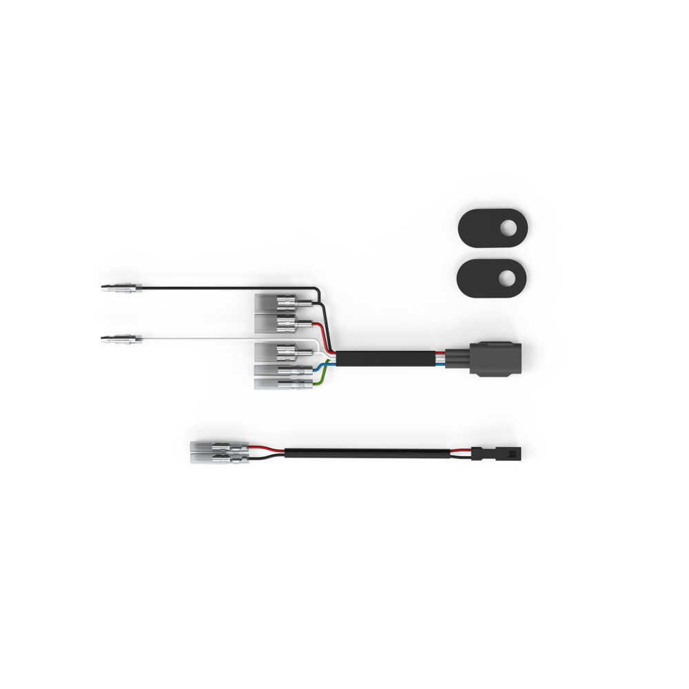 Let op: bij montage van Rizoma-richtingaanwijzers in combinatie met de Rizoma kentekenplaathouder PT804B is deze set niet nodig, omdat PT804B al de bekabeling bevat die nodig is voor de installatie van Rizoma-richtingaanwijzers.