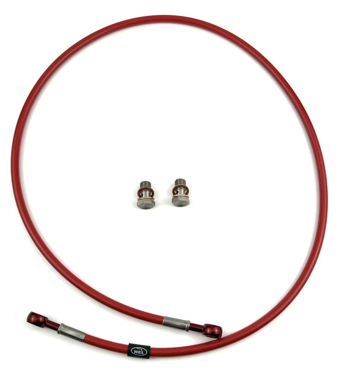 De rubber geleider(s) op de leiding bevind(en) zich aan de rempomp zijde en het hoesje met het HEL logo hoort aan de remklauw zijde.Dit is slechts een hulpmiddel om snel en makkelijk te bepalen hoe de leiding gemonteerd dient te worden. Het maakt verder niets uit in welke richting de remvloeistof door de leiding geperst wordt.